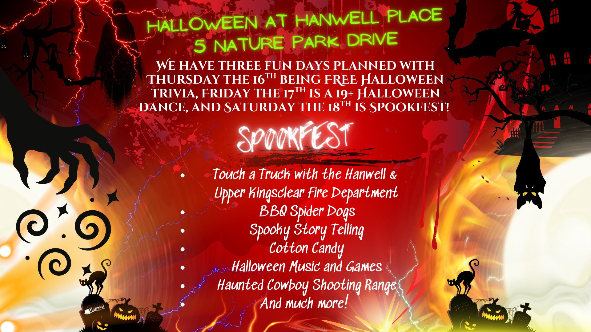 If you have any questions at all regarding Spookfest or one of the other events planned, please send an email to recreation@hanwell.nb.ca